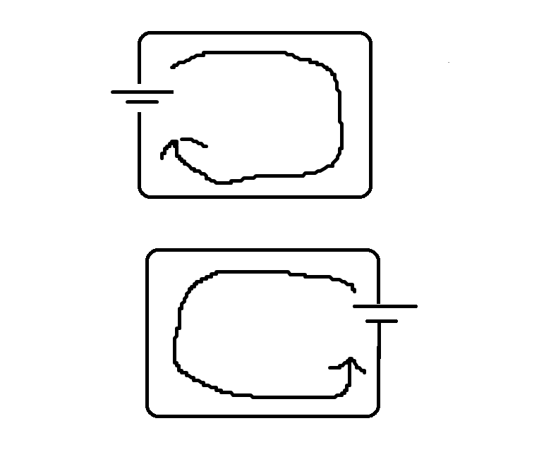 아래의 경우는 +가 위쪽에 있어도 저렇게 한 바퀴 도는 것이 아니라 바로 아래로 도나요?