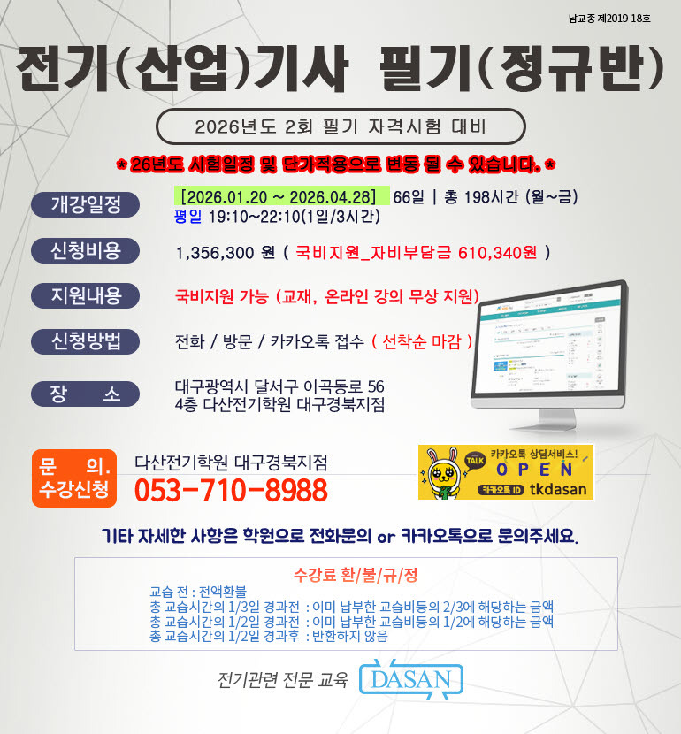 [국비가능_마감] 전기(산업)기사필기_26.01.20-26.04.28 작성자다산 장원식원장|작성시간25.11.06|조회수25 목록 댓글 0 글자크기 작게가 글자크기 크게가 다음검색 현재 게시글 추가 기능 열기 북마크 신고 센터로 신고 댓글 댓글 0 댓글쓰기 답글쓰기 댓글 리스트