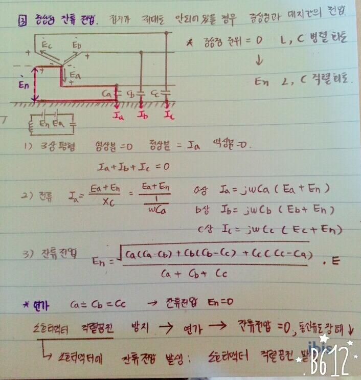잔류전압이 흐를때 3상 4선식 소호리액터접지의 등가회로가 궁금합니다!