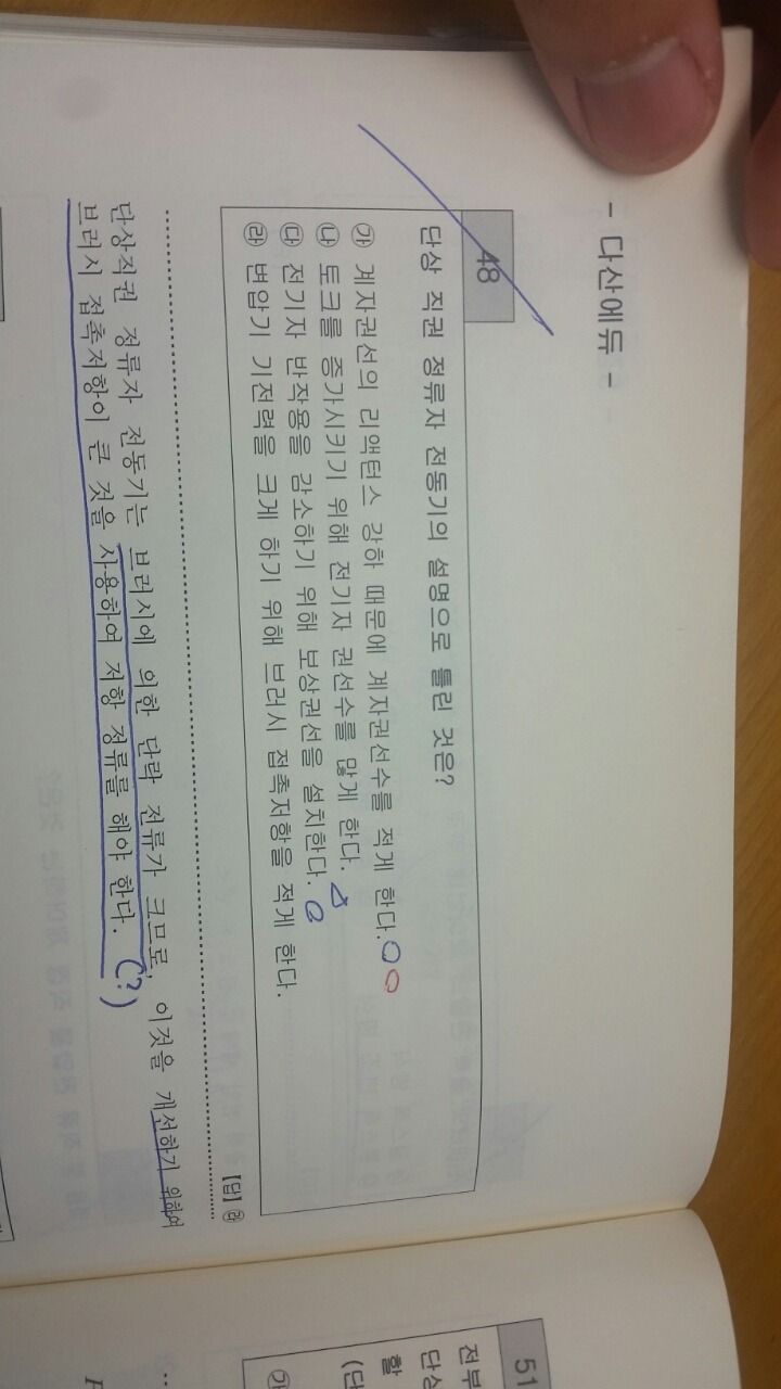 1. 단상직권 정류자 전동기는 브러시에 의한 단락전류가 크다