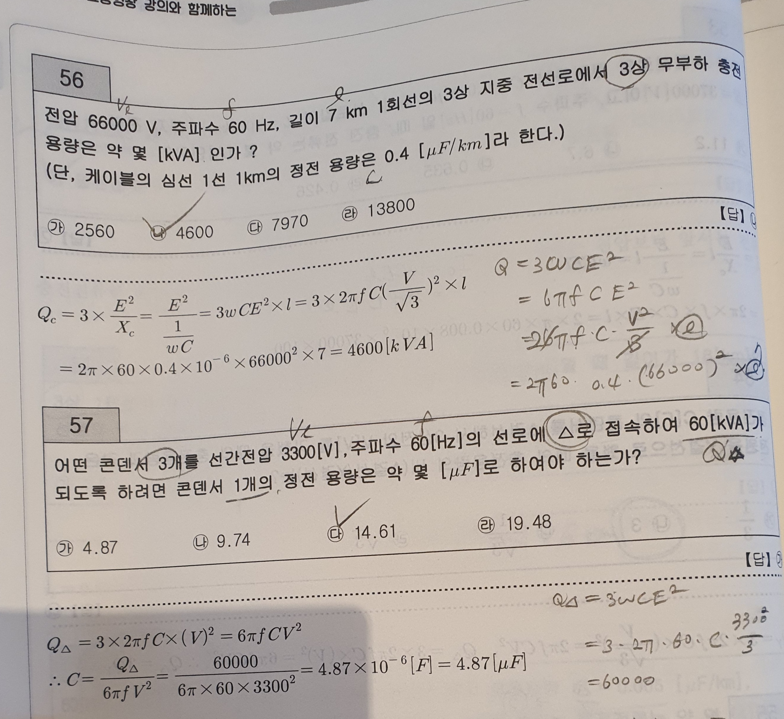 56번의 경우 충전용량 계산시 대지전압을 사용합니다