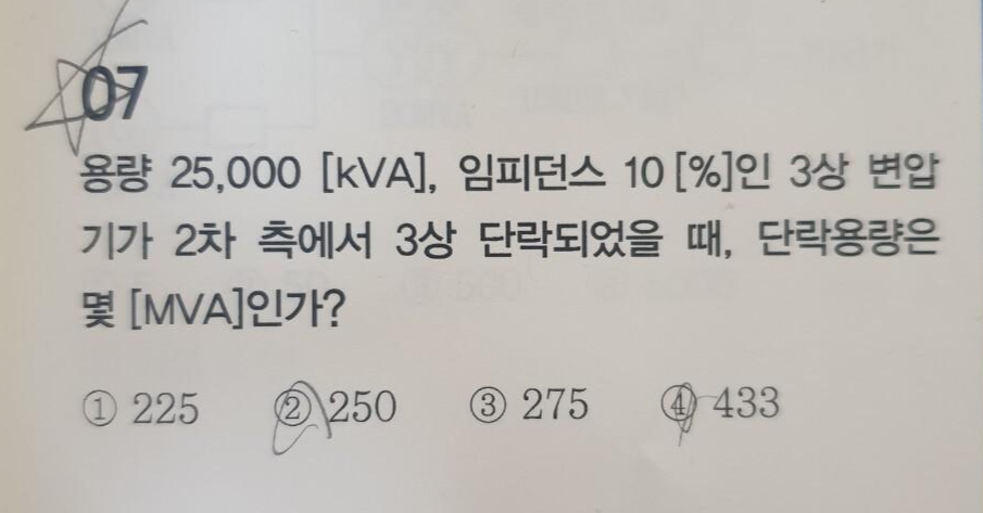 3) 해설에서는 문제에서 주어진 %임피던스와 정격용량 두가지 이므로 (단상)단락용량 공식을 사용해 답이 2번이되었는데 왜 3상단락용량식은 사용하지 못할까요??