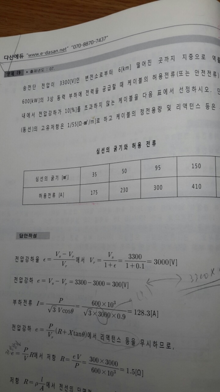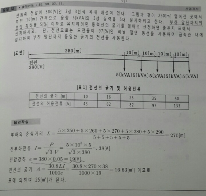 18번 문제는 380V가 송전단 전압이기 때문에, 수전단 전압을 따로 구해야 하지만,