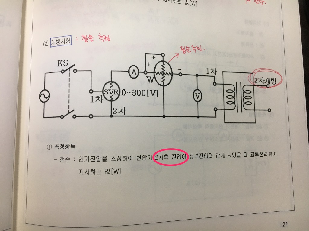 실기 정규반 교재 21페이지에서 철손 측정방법에