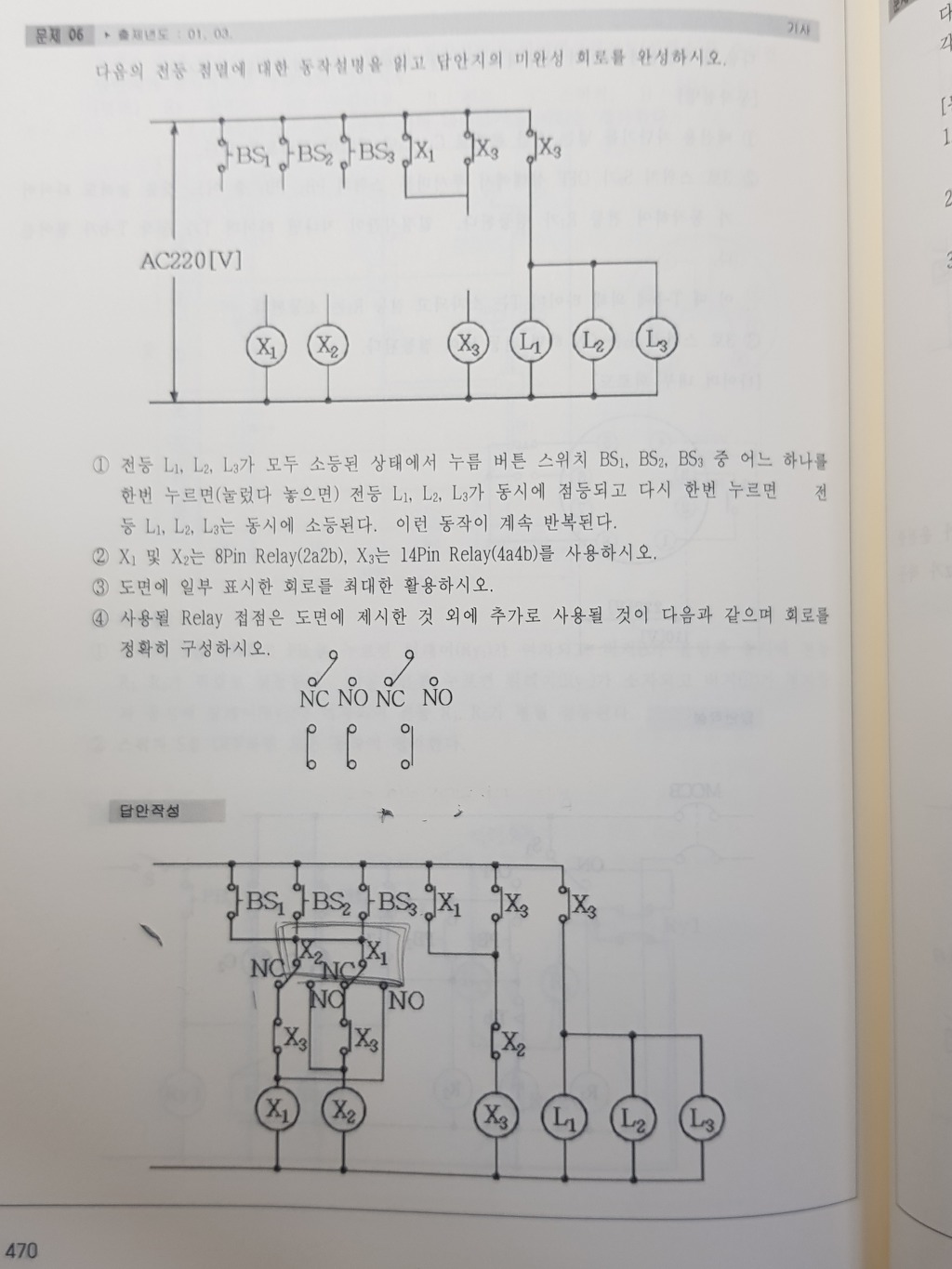 2. 문제에 있는 NC, NO가 있는 접점을 C접점이라 하며 A접점(NO)과 B접점(NC)이 합해진 접점입니다.