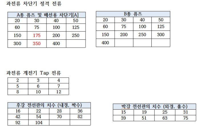 2 과전류차단기. 두종류로 구분해서 내선규정에 나온것같던데 정격전류가. 저게 맞나요?