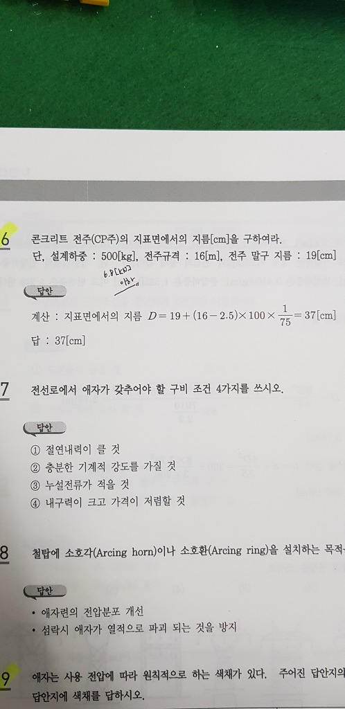 맨위 사진의 6번 문제 질문입니다. 6.8[KN] 이하이기 때문에 2.5[m] 빼주는 부분인데요..