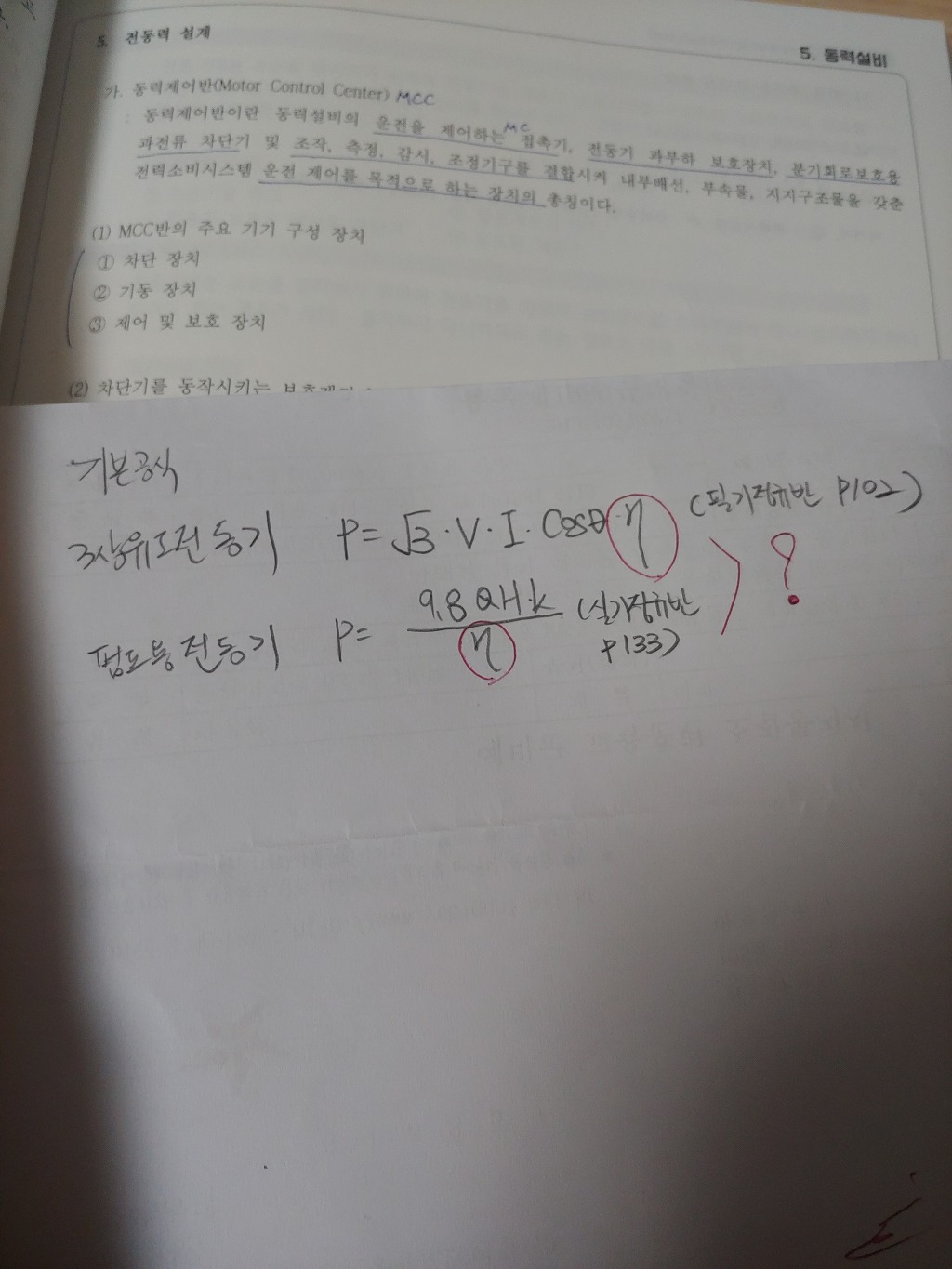 1. 첨부된 것 처럼 같은 전동기 출력 공식인데 왜 다른지 궁금합니다.