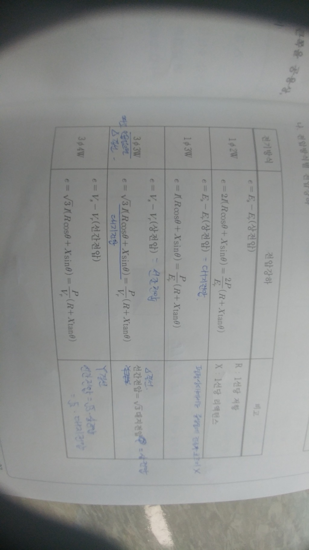 책에서는 3상3선이랑 3상4선 두개의 전압강하공식이 똑같이