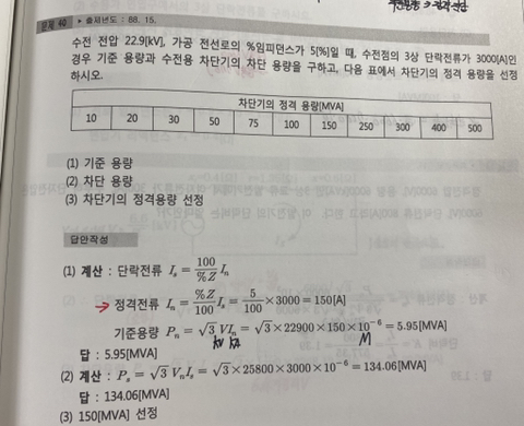 2번에 차단기 정격구할때 22.9의 정격인 25.8을 쓰는데요