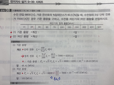 밑에 문제 2번에는 차단기 정격 구할때 직접 공식을써