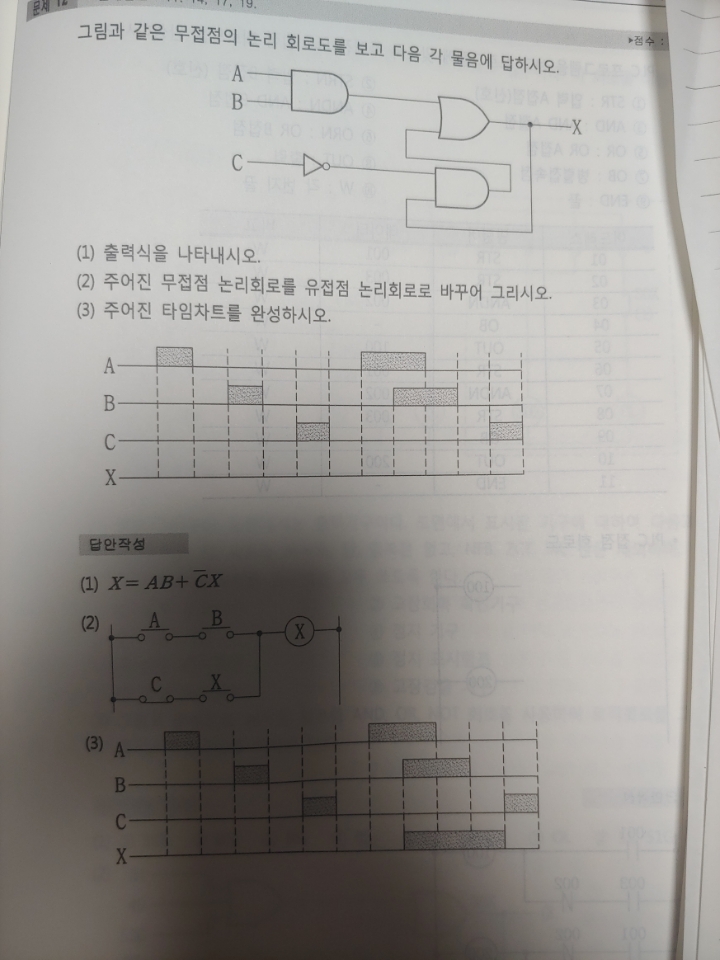 2. 타임차트에서 회로동작에 맞게 입력신호 인지 접점의 연결, 개방인지 판단하셔야합니다.