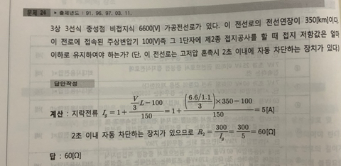 문제와 같이 제2종접지공사 접지 저항값 구하는 문제에서,