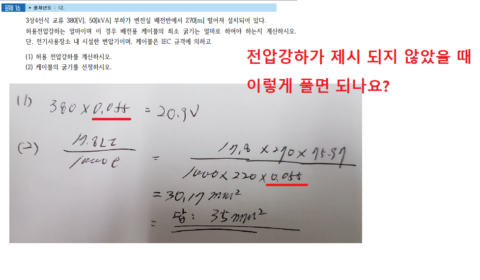 전압강하에 대해서 확인차 한번 더 올려봅니다. 이렇게 풀면 되나요?