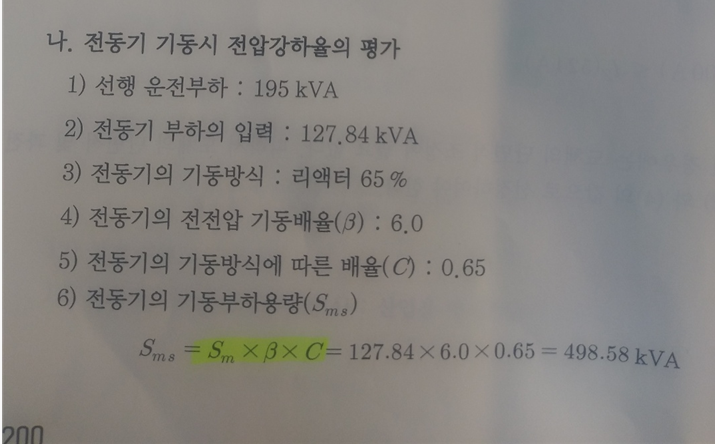 3) 전동기의 기동시의 전압강하율의 평가 P200
