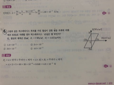 따라서 히스테리시스손실 = 면적 x 체적으로 나타낼 수 있습니다.