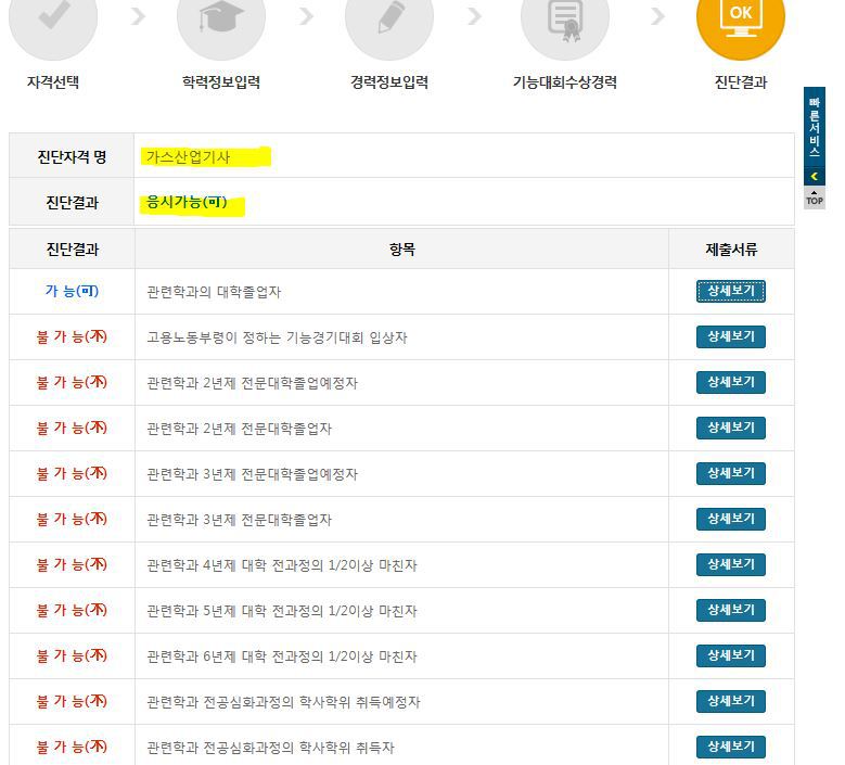 4. 진단결과에 응시 가능이라고 나와 있으면 응시 가능한 거고, 응시 불가로 뜨면 응시 불가능 입니다 'ㅅ'~