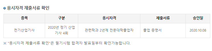 큐넷 홈페이지에서 응시자격 제출서류 확인 작성자전기산기따자1|작성시간20.10.08|조회수1,004 목록 댓글 2 글자크기 작게가 글자크기 크게가 오늘 오전에 인터넷으로 응시자격 서류 제출했는데방금 [마이페이지] -> [응시자격] -> [응시자격 제출서류 확인] 에서 확인해보니위와 같이 나오는데 제대로 처리 된거 맞겠죠?... 다음검색 현재 게시글 추가 기능 열기 북마크 공유하기 신고 센터로 신고 댓글 댓글 2 댓글쓰기 답글쓰기 댓글 리스트 작성자mmlg | 작성시간 20.10.08 승인일에 날짜 적혀있으면 된걸로 알고있어요 답댓글 작성자전기산기따자1 작성자 본인 여부 작성자 | 작성시간 20.10.08 인터넷을 찾아보니 며칠씩 걸린다고 했는데너무 빨리 승인이 나서 여쭤봤습니다.답변 감사합니다~! 댓글 전체보기