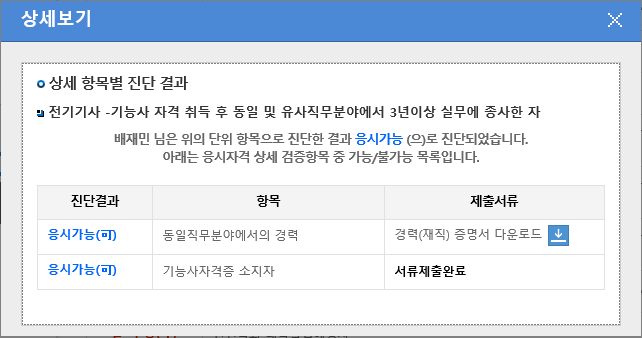 기능사자격 취득후 3년이상 실무에 종사한자로 응시가능으로 진단되었다고 하는데요