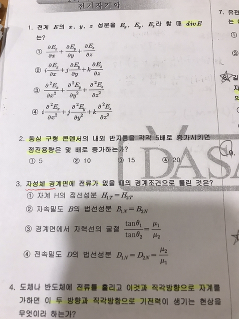 [전기기사]18년 3회 2번, 19년 2회 18번 동축케이블 정전용량 작성자기사기사tk|작성시간20.01.26|조회수1,147 목록 댓글 2 글자크기 작게가 글자크기 크게가 두개의 문제 유형이동축케이블의 정전용량을 물어보는 거라고 생각하는데정전용량 구하는 식이 서로 상이합니다.혹시 따로 외워줘야하는지, 아니면 서로 연관되어 있는 식 인지.도움주시면 감사드리겠습니다. 다음검색 현재 게시글 추가 기능 열기 북마크 공유하기 신고 센터로 신고 댓글 댓글 2 댓글쓰기 답글쓰기 댓글 리스트 작성자시나브로^^ | 작성시간 20.01.27 2번 문제는 동심 구형입니다.18번 문제는 동심 원통형입니다.모양이 서로 다르므로 공식도 서로 다릅니다. 답댓글 작성자기사기사tk 작성자 본인 여부 작성자 | 작성시간 20.01.28 문제를 잘못 읽고 있었네요.. 감사합니다 댓글 전체보기