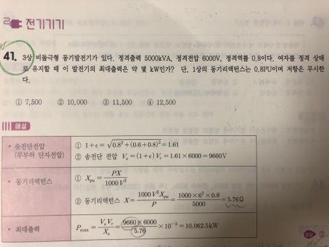 맨 밑에 최대출력 식에서 3샅 동기발전기는 곱하기3을 해야하는거 아닌가요 ?