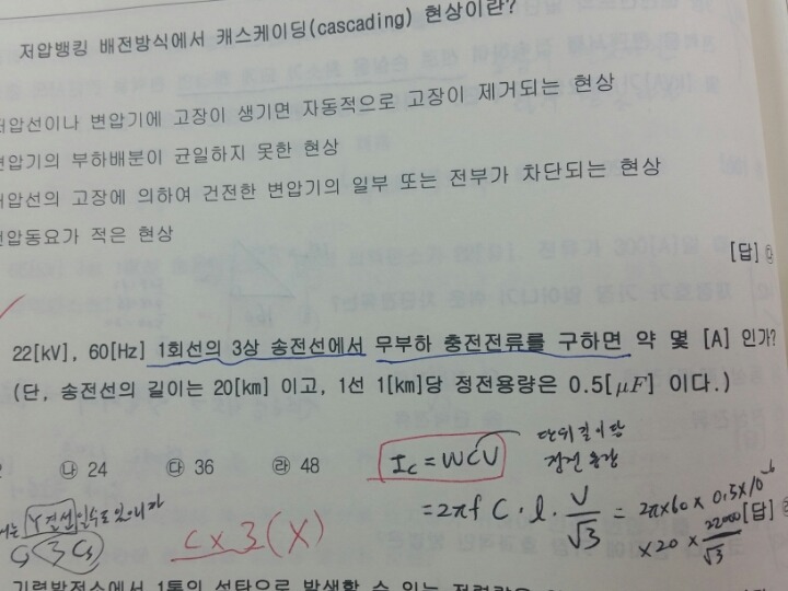 원장님 질문드립니다 작성자바이|작성시간16.02.16|조회수310 목록 댓글 2 글자크기 작게가 글자크기 크게가 왜 3×Cs가 아닌 그냥 Cs를 곱한건가요?? 다음검색 현재 게시글 추가 기능 열기 북마크 공유하기 신고 센터로 신고 댓글 댓글 2 댓글쓰기 답글쓰기 댓글 리스트 작성자사시랑이 | 작성시간 16.02.16 안녕하세요..답변드립니다. Cs는 대지 정전용량이며, 한상당 정전용량을 구할때 3Cs를 곱합니다. 그런데, 이 문제에서는 1km당 정전용량..즉, 전체 정전용량이라고 언급을 하였기 때문에 3Cs를 한 값이 0.5라고 이해하시면 좋을것 같습니다. 답댓글 작성자바이 작성자 본인 여부 작성자 | 작성시간 16.02.16 감사합니다 꾸벅~^^ 댓글 전체보기