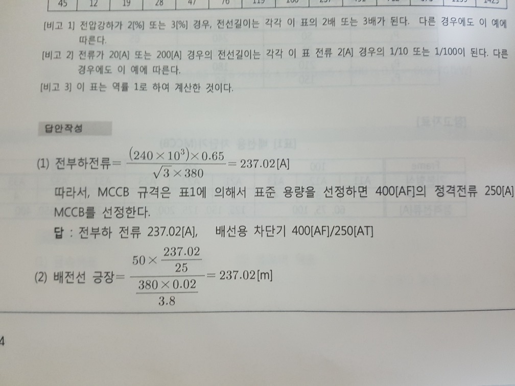 일단 문제 성격상 출제가는 전선최대길이표를 활용해 답하라는 거 같습니다. -