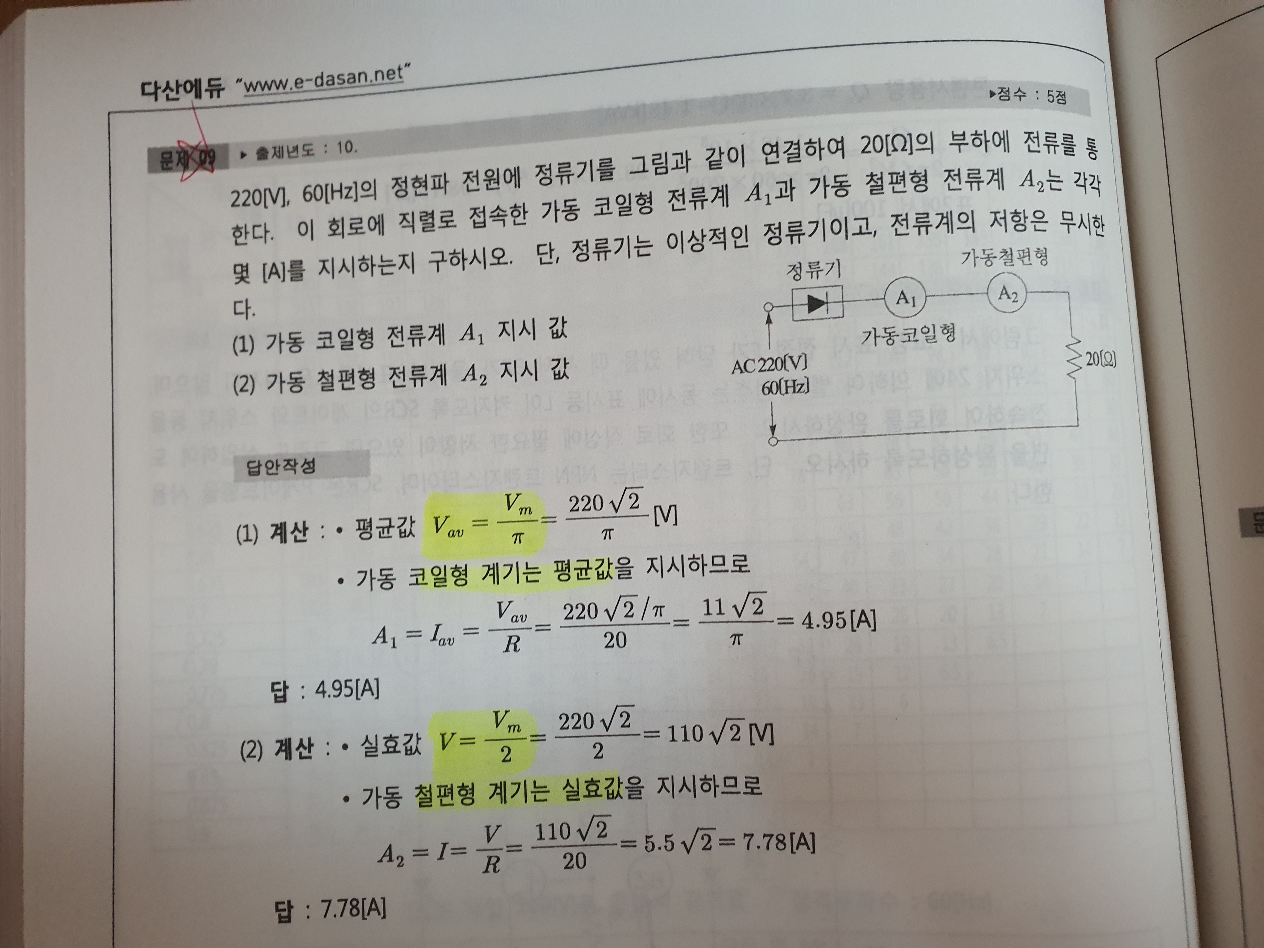 정현파 실효값은 최대값을 루트2로 나누는거 아닌가요? 작성자JE0NG|작성시간20.09.08|조회수1,563 목록 댓글 2 글자크기 작게가 글자크기 크게가 (2)번에서 실효값 V를 구하는데 왜 Vm을 2로 나누는지 이해가 안갑니다 ㅠㅠ 다음검색 현재 게시글 추가 기능 열기 북마크 공유하기 신고 센터로 신고 댓글 댓글 2 댓글쓰기 답글쓰기 댓글 리스트 작성자tuckboom | 작성시간 20.09.08 다이오드 한개로 구성된 정류기는 반파 정류기입니다.정현파 반파 정류의 평균값은 최대값/pi , 실효값은 최대값/2 작성자시나브로^^ | 작성시간 20.09.09 단상반파정류 실효값 Vm/2단상전파정류 실효값 Vm/루트2 댓글 전체보기