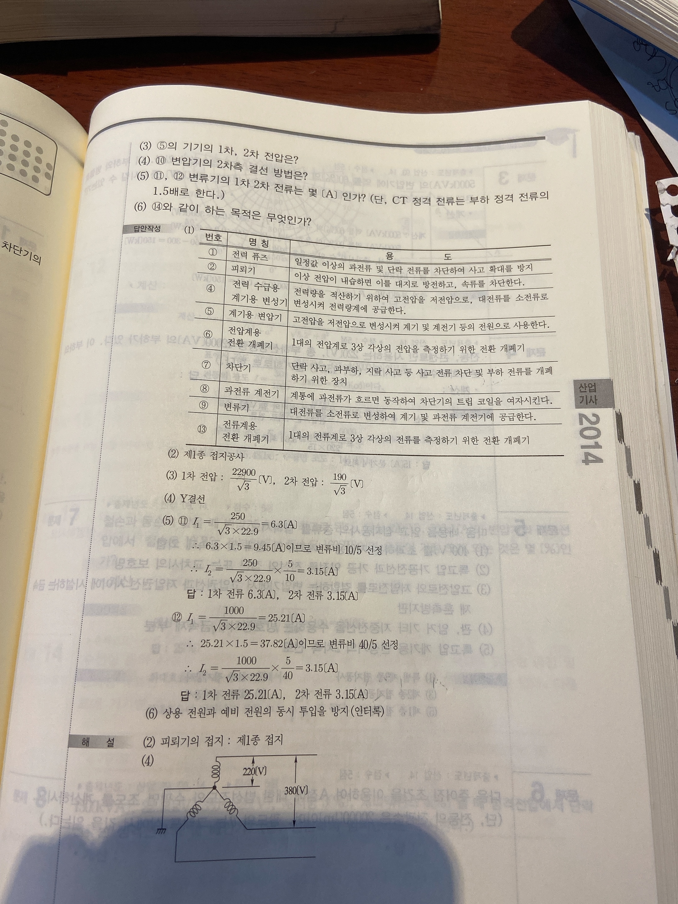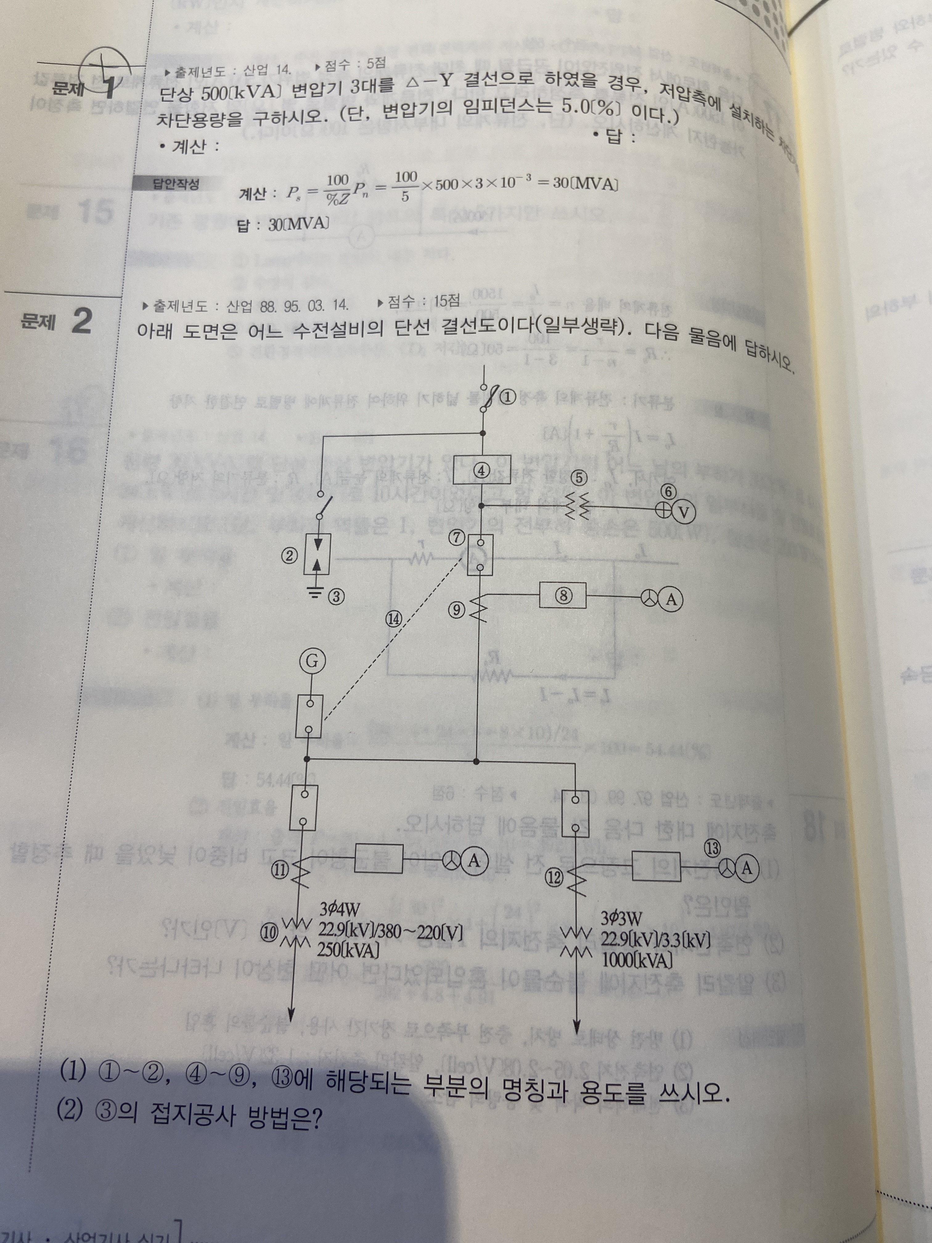 아래 문제에서 2번 문제 5) 변류기1차2차 전류 구할때 1차전류에 1.5배를 안해줘서 물어봅니다!