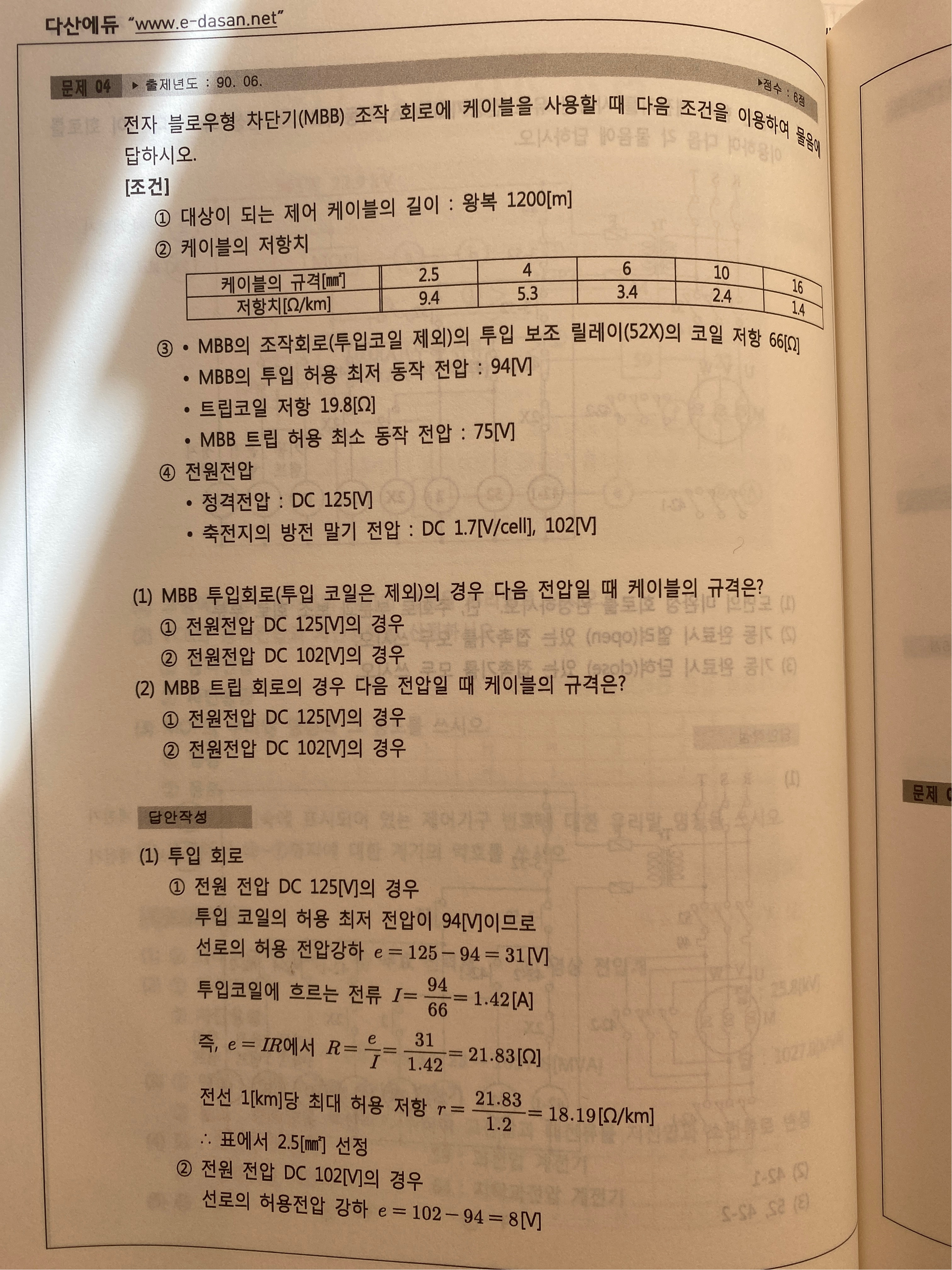 2. MBB의 투입 허용 최소 동작 전압이 94[V] 이고 코일 저항이 66[Ω] 일때