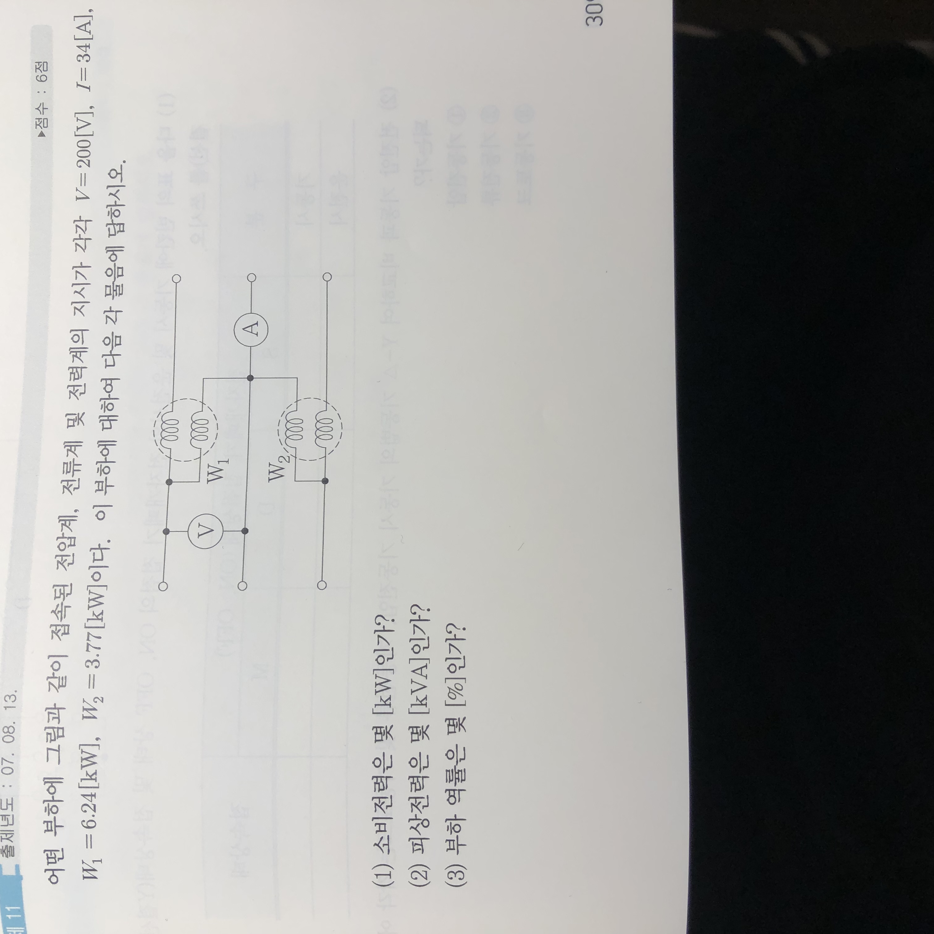 질의하시는 문제의 그림은 2전력계법. 3상에 대한 것입니다.