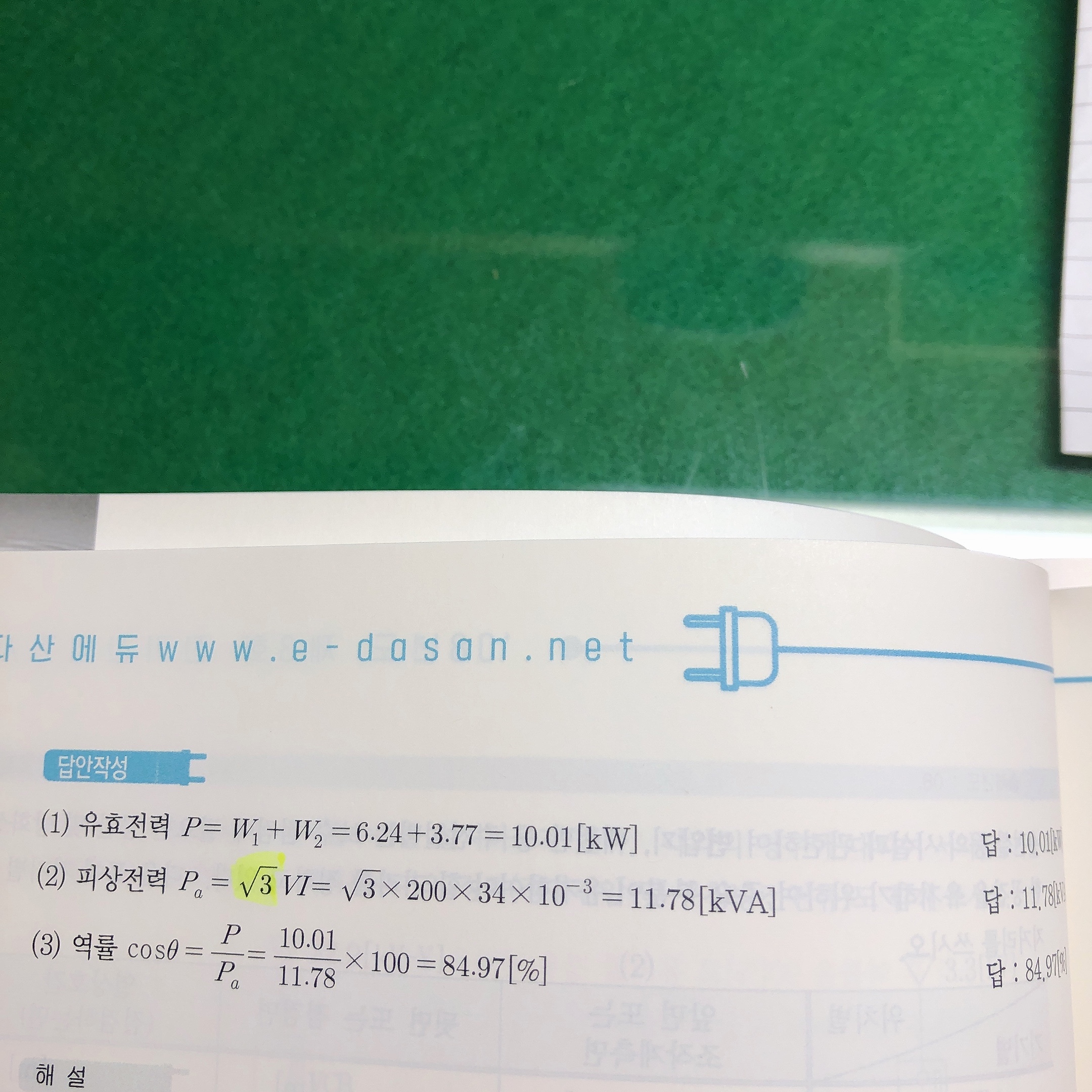 피상전력 = 루트삼 * V * I 공식을 쓰는 것이 더 정확합니다.