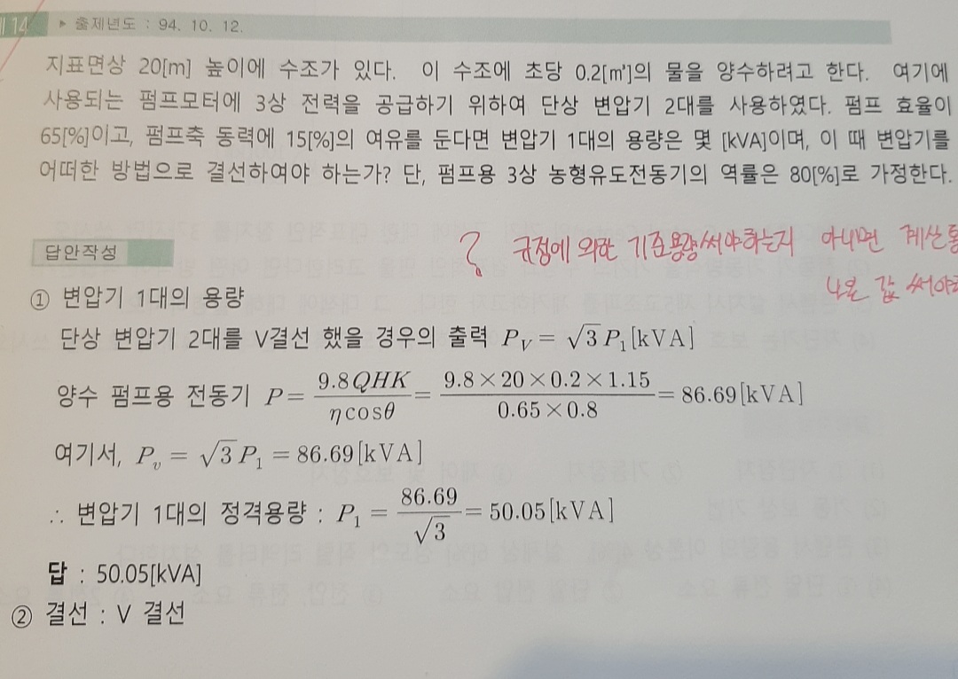 해당문제는 답이 계산값이지만 표가 주어지지 않았을 경우 정격용량으로 써야하는지 계산값을 써야하는지 기준을 모르겠습니다!