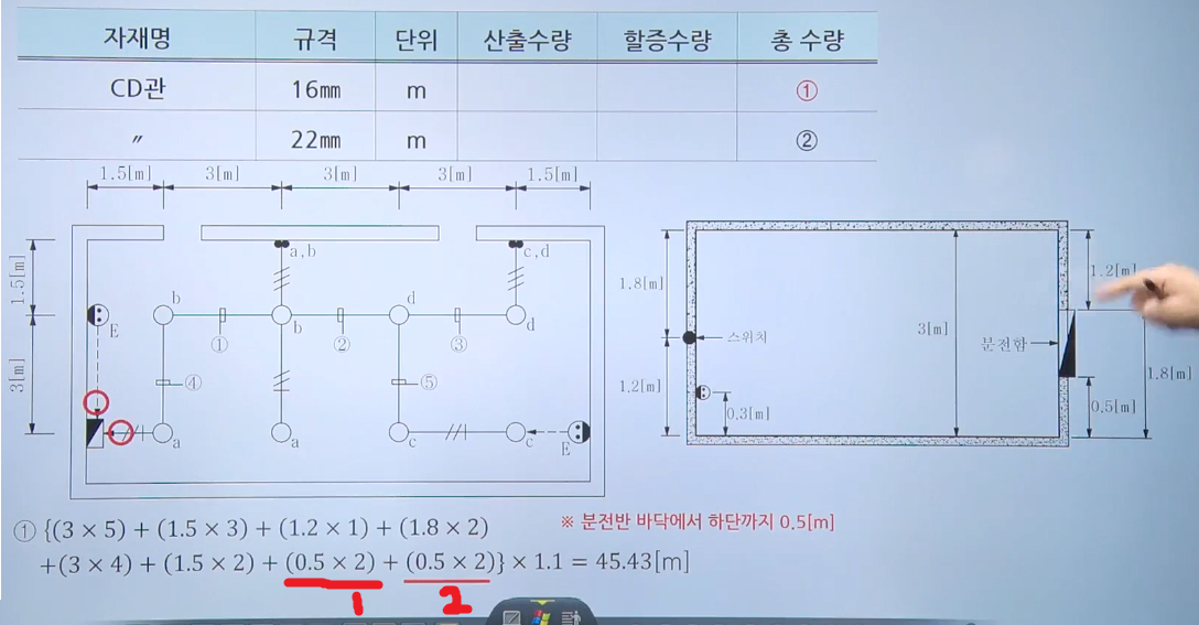 분전반하단부터 바닥슬라브까지 계산하는 문항은 어떻게 조건이 달리는지 정확히 모르겠네욥. ㅜ,ㅜ