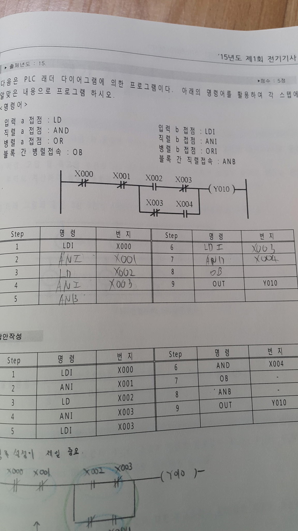 실제로 과년도 기출 PLC예제에선 저처럼 중간중간에 블록간 직렬,병렬 명령을 넣은 경우도 보았구요