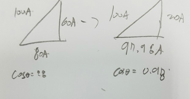 PS. 부하에 50[A]씩 제공해주기 때문에 진상전류가 추가 되어도 피상(?) 전류는 변하지 않고 100[A]으로 고정한다고 생각 했는데 이 부분도 맞는지 답변 부탁드리겠습니다.