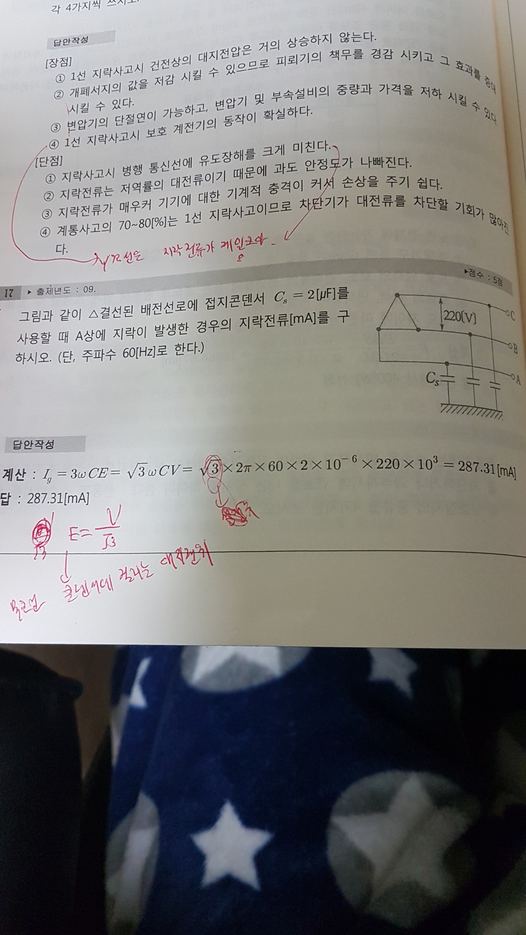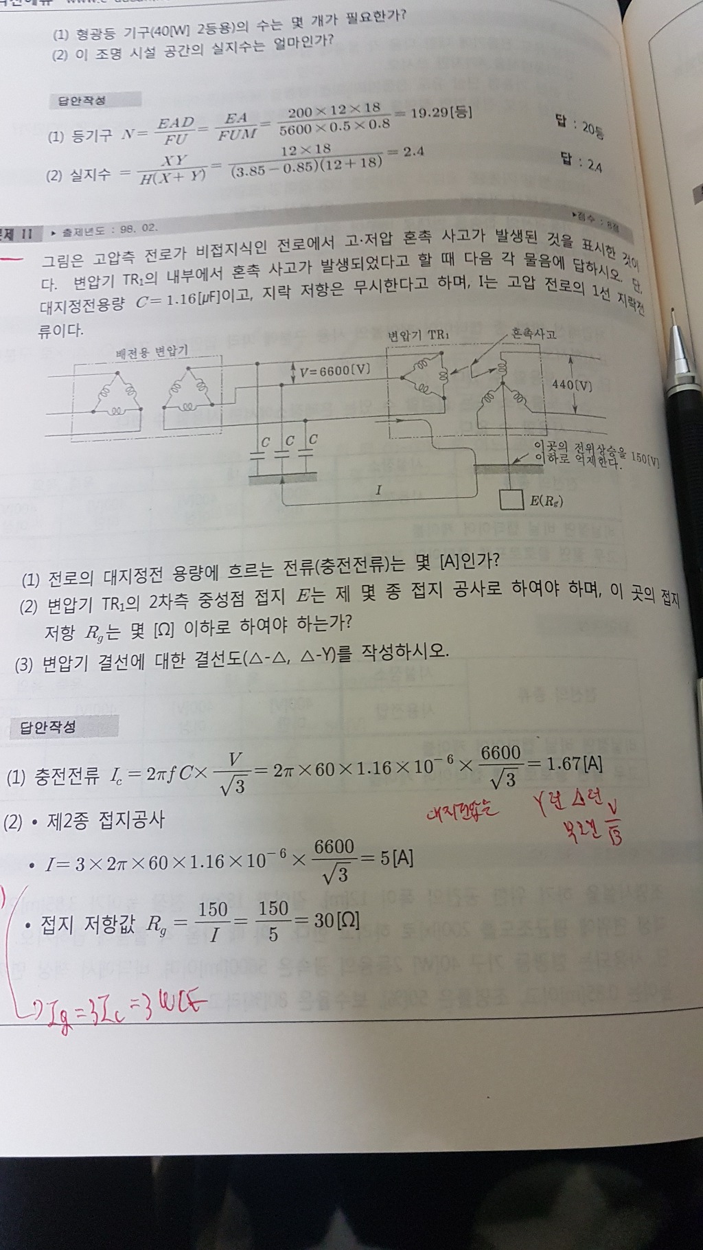 두번째 사진은 지락전류를 물어봤으니 Ig=3Ic=3wcE 입니다. -