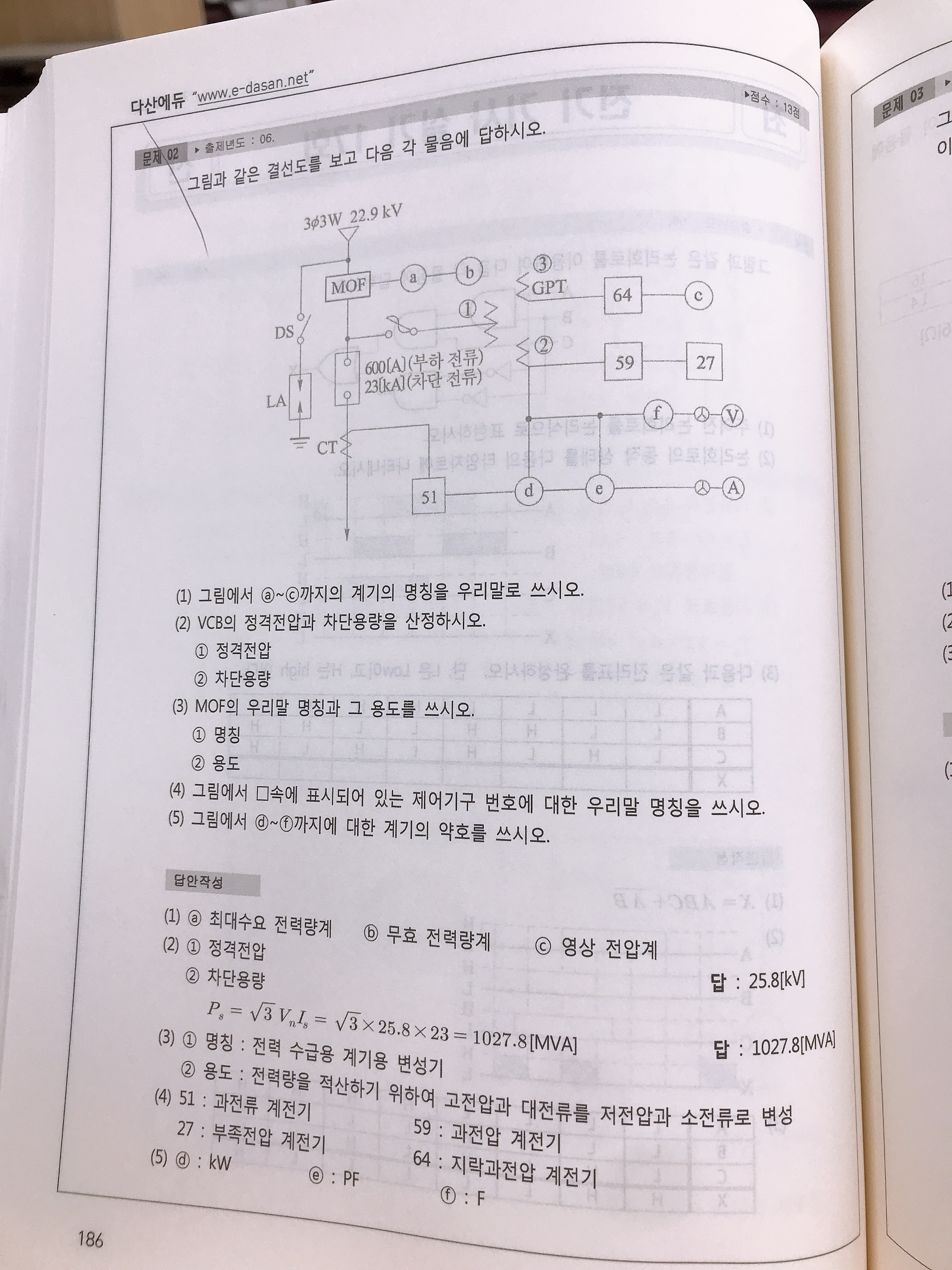 과년도 17회 문제2번 질문입니다 p 186
