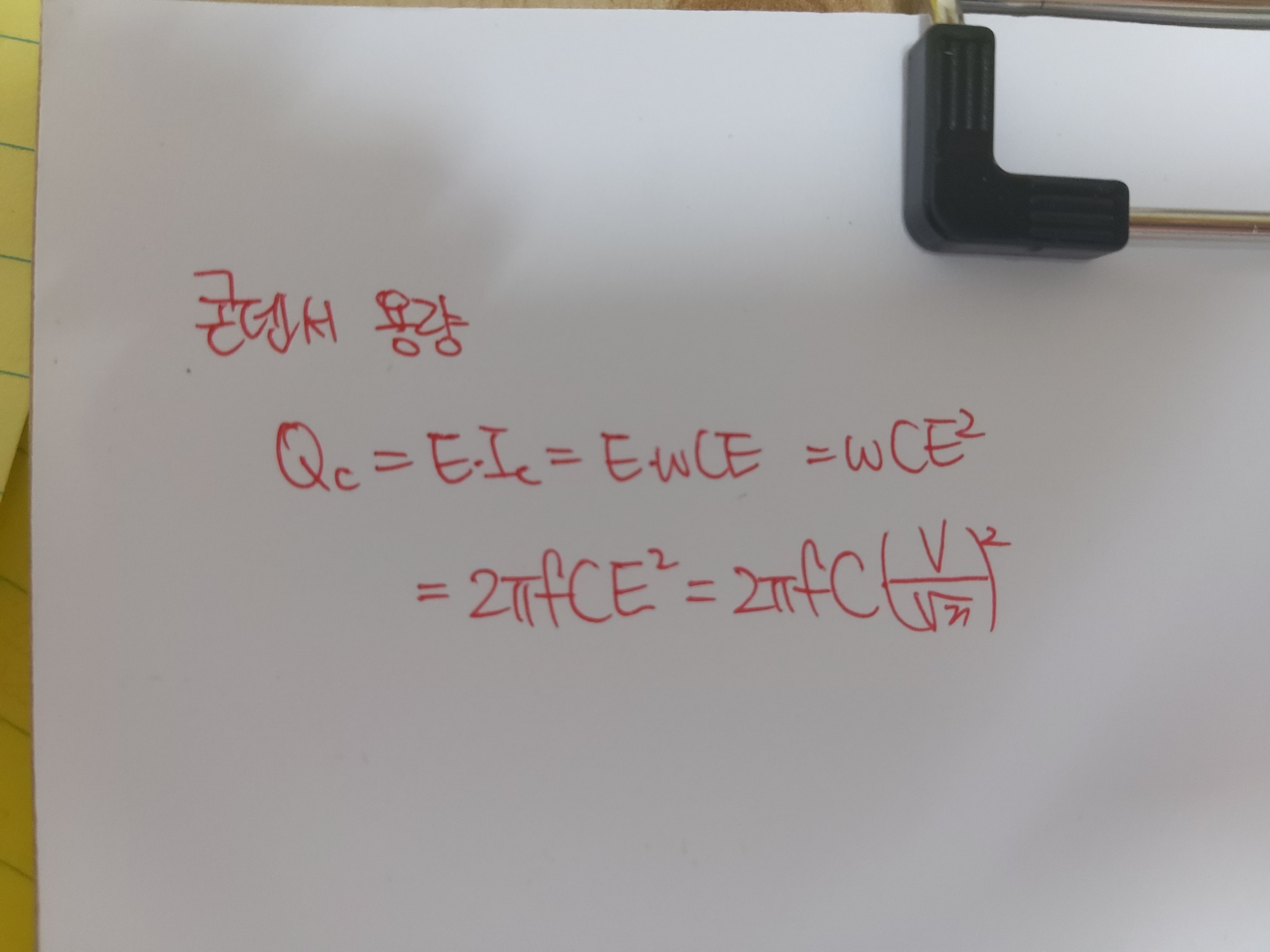 참고로 콘덴서 델타결선시 1선 충전용량식이 Q1=wCE^2고 Q델타=3Q1=3wCE^2입니다.