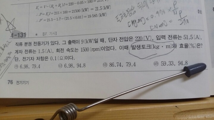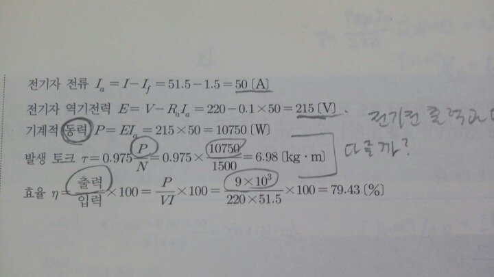 즉, 토크는 전력을 구해서 계산해야 하며, 효율은 출력/입력 으로 계산해야 합니다.