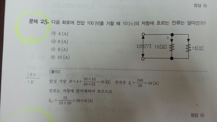 위에분 말씀하신건 일단 100볼트와 10옴과 15옴이 모두 병렬이기에 10옴과 15옴에 각각 100 볼트씩 걸리게 되서 10옴에 100볼트가 걸렷다는것은 10암페어가 흐른다는것을 알수있죠 그래서 라번이 맞는답입니다