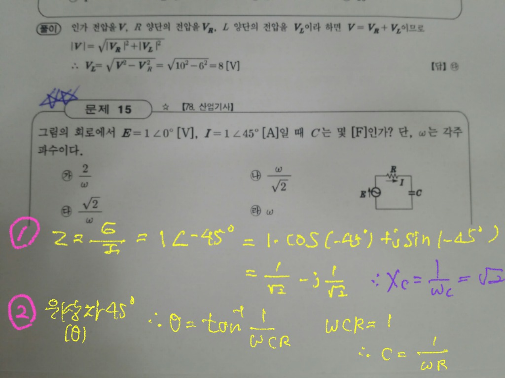 R-C직렬회로 문제인데요 작성자Re-Public|작성시간18.05.25|조회수1,746 목록 댓글 2 글자크기 작게가 글자크기 크게가 정답은 다.번이고 이해는 가는데요 (1번 풀이)만약에 2.번 같이 풀면 잘못된 것인지요? 혹시 잘못된 풀이라면 논리적 모순이나 어느 부분이 잘못된지 지적 좀 부탁드립니다정말 궁금합니다 다음검색 현재 게시글 추가 기능 열기 북마크 공유하기 신고 센터로 신고 댓글 댓글 2 댓글쓰기 답글쓰기 댓글 리스트 작성자사시랑이 | 작성시간 18.05.28 안녕하세요...답변드립니다. 풀이는 맞습니다. 다만, 필기시험에서는 보기에 있는 값을 선택해야 하기 때문에 결과값이 보기에 있는 값이 되어야 합니다. 답댓글 작성자Re-Public 작성자 본인 여부 작성자 | 작성시간 18.05.28 네 답변 고맙습니다. 그리고 이제보니 1/root2 을 잘못 쓴거 같네요 댓글 전체보기