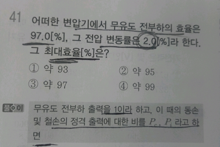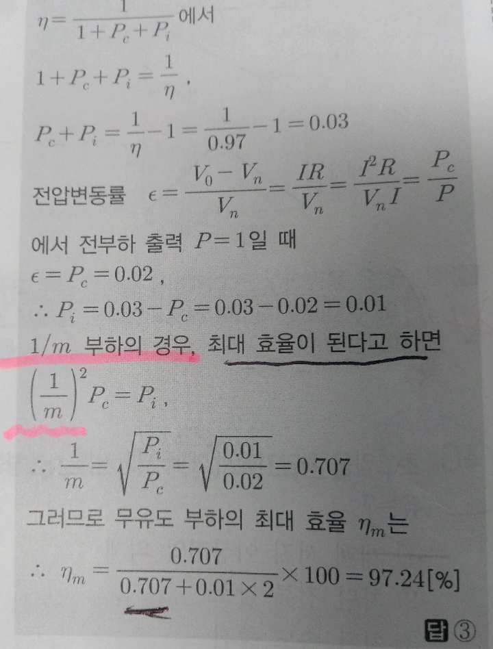 작성자이와젠 작성시간 19.02.16 아뇨 형광펜치신부분이맞는거에요 m분의1부하에서 최대효율이되는 조건근 동손x(m분의1)제곱=철손 이맞아요