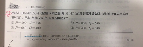 질문드리고 싶은것이 피상전력을 구하는 과정에서 페이저 형태의 전압 100각30도 의 공액복소수 형태를 취한 것이 100각 -30 이잖아요? 그런데 이걸 전류에데한 공액 복소수로 취하면 값이 제가 형광팬으류 칠해 놓은 것 처럼 다르게 나오더라구요 제가 잘못한건지 뭐가 잘못됬는지 잘 모르겠습미다. 알려주시면 감사드리겠습니다. 좋은 하루되세요