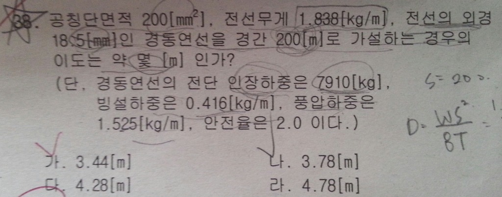이도 문제! 작성자꼬맹이aa|작성시간13.09.12|조회수1,288 목록 댓글 1 글자크기 작게가 글자크기 크게가 잘 안풀리네요. 풀이 과정 좀 알려주세요 ㅠ.ㅠ 다음검색 현재 게시글 추가 기능 열기 북마크 공유하기 신고 센터로 신고 댓글 댓글 1 댓글쓰기 답글쓰기 댓글 리스트 작성자사시랑이 | 작성시간 13.09.27 안녕하세요..답변드립니다. 다른 이도 문제와 다를 것이 없습니다. 다만..전선의 중량 W를 구할때..전선무게와 빙설하중은 아래쪽으로 작용하고, 풍압하중은 옆으로 작용하기 때문에..루트((전선하중+빙설하중)제곱 + 풍압하중의 제곱)으로 구한값을 대입하시면 됩니다.또한 장력을 구하기 위해서 인장하중을 안전율로 나눈 값을 대입하시면 됩니다. 댓글 전체보기
