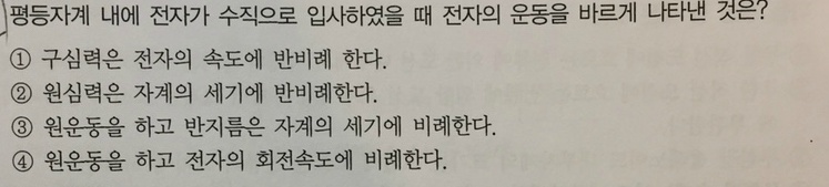 전자의 운동 작성자전기기사0|작성시간19.12.30|조회수758 목록 댓글 2 글자크기 작게가 글자크기 크게가 원장님 이문제에서보기 2번을 위와같이 해석하면 안되는겁니까??원심력은 자계의 세기에 반비례한다고..그리고 보기 4번 또한 설명 부탁드려도 되겠습니까..ㅜㅜ 다음검색 현재 게시글 추가 기능 열기 북마크 공유하기 신고 센터로 신고 댓글 댓글 2 댓글쓰기 답글쓰기 댓글 리스트 작성자시나브로^^ | 작성시간 19.12.31 질문1.자계의 세기는 B로 볼수 있습니다.따라서, 원심력은 자계의 세기에 비례합니다.질문자님 공식은 자계내에 m(Wb)의 자하가 있을 때의 공식입니다.해당 내용과 무관합니다.질문2.구심력이 Bev 이므로 구심력은 속도에 비례하며, 구심력과 원심력이 같으므로 원운동을 합니다. 답댓글 작성자전기기사0 작성자 본인 여부 작성자 | 작성시간 19.12.31 답변 감사합니다!!! 댓글 전체보기