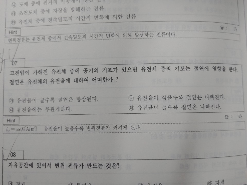 위 문제를 보면 답이 유전율이 클수록 절연은 나빠진다고 하는데,