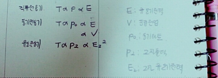 제가 공부하다가 토크와 출력 유도기전력 공급전압과의 관계가 너무 헷갈립니다...😯 궁금해서 정리해봤는데