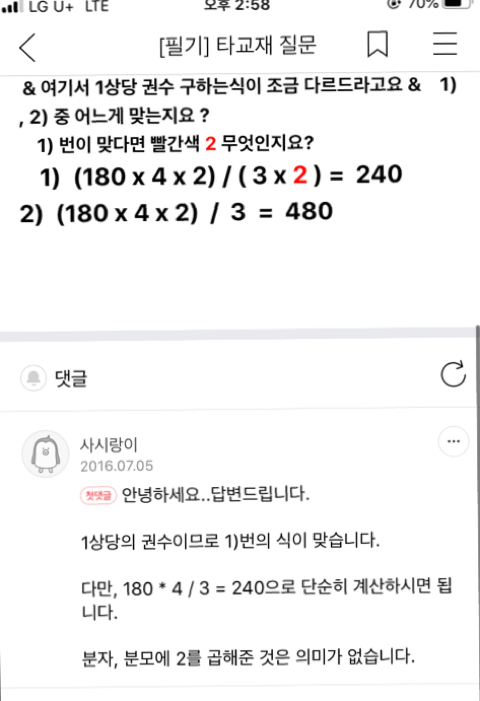 1층의 권수를 구해야 하니까 2로 다시 나눈것 같네요 -