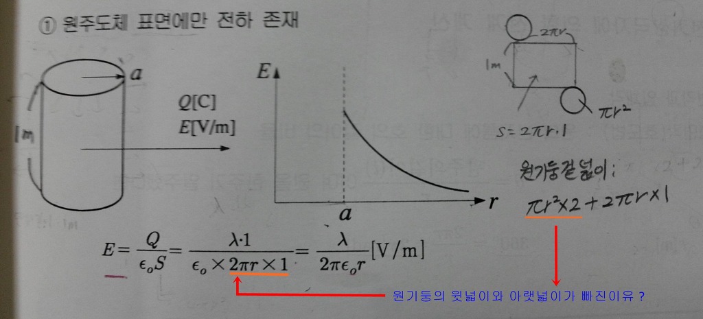 혹시 윗면, 옆면이 없는 원기둥 옆면의 전계를 구하는것이 원래 교재 내용인가요?